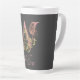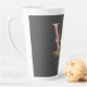 Hübsche latte Tasse mit rosa Glitzer Initial / Buchstaben W mit goldenen Blätter und Wirbel und Coppery Schmetterling Overlay. Personalisieren Sie mit dem hinzugefügten Namen in Pink Script Schriftart . Karkohlegrauer Hintergrund