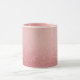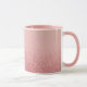 Das ist eine Combo-Tasse mit rosa Interieur. Die Oberseite der Tasse ist eine hellrosa Farbe, die zu einer glänzenden Rose Gold Glitzer Textur am unteren Rand. Der Glitzer schafft eine schimmernde Wirkung, wobei die Glitzern dem Bild eine glamouröse Ästhetik verleihen. Die Partikel des Glitzer variieren in Größe und Intensität und erzeugen einen Qualitätseffekt. Die Tasse ist eine Combo-Tasse mit einem rosa Griff und einem rosa Interieur.