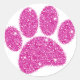 Rosa Glitzer Dog Pawprint Runder Aufkleber