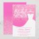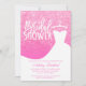 Moderne, hübsche und elegante Duschkabine mit rosa Glitzer-Duschkopf und farbenfroher Brautparty-Party Einladung mit rosa Ober-Motiven auf rosa Untergrund und elegantem Hochzeitskleid. Ideal für eine Prinzessin-Brautparty, perfekt für sie, für die Moderne, die Moderne und Glanz Liebe