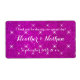 Lila Glitzer Hochzeitswein oder Etiketten mit Quellwasser. Personalisierte, elegante Wasserflaschenaufklebervorlage mit funkelnd Hintergrundstruktur. Extravagante Skripttypografie für Namen von Braut und Bräutigam und danke Ihnen Nachricht. Verwenden Sie als klassische Tischdekoration oder danken Sie für die Gäste des Party. Enthält Name oder Monogramm plus Heiratsdatum. Imitate glitzern Design mit funkelnd Glitzern und glitzernden Glanzern. Auch gut für extravagante Verlobung oder Jubiläum Ansammlung. Mit dieser glänzenden DIY-Vorlage erstellen Sie Ihre eigenen Mineralwasser-Etiketten. Anpassbare Hintergrundfarbe. Glamouröses Aussehen Accessoires.