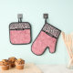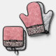 Rosa Glitzer Leopard Druckschimmer Personalisiert Ofenhandschuh & Topflappen-Set