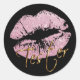 Rosa Glitzer Lippen auf Schwarz - Semester Runder Aufkleber