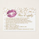 So Pink Glitzer Lips und Elegant Gold Designer Anwendungsanweisungen. Suchen Sie nach Karten unterschiedlicher Größe und mehr Farben. Weitere Farben sind verfügbar. ( Stichwort: Glitzer Lips ) 100% anpassbar. Füllen Sie das/die Feld(e) aus oder klicken Sie auf die Schaltfläche CUSTOMIZE, um einen der Schriftart oder Grafiken hinzuzufügen, zu verschieben, zu löschen, zu verändern oder zu verändern. Hergestellt mit hochauflösender Vektorgrafik und/oder Digitalgrafik für einen beruflichen Druck. HINWEIS: (DIES IST EIN DRUCK. Alle zazzle Produktdesigns sind "Drucke", sofern nicht anders unter "Über dieses Produkt"-Bereich angegeben) Das Design wird genau wie Sie es auf dem Bildschirm und auf dem Produkt sehen..also stellen Sie bitte sicher, dass Sie bei der Anpassung der Größe eines Textes oder einer Grafik sicher sind, dass es in die Bereiche passt, und dass Ihre Schreibweise und Formulierung so ist, wie Sie es wünschen, in Größe, Farbe und Schriftart. Wenn Sie Fragen zu diesem Design haben, kontaktieren Sie mich bitte unter siggyscott@comcast.net oder besuchen Sie meinen Shop Link: http://www.zazzle.com/designsbydonnasiggy?rf=238713599140281212 (Kopieren und Einfügen) Ich werde Ihnen gerne helfen. Vielen Dank für die Unterstützung und das Anhalten durch mein Geschäft - DesignsbyDonnaSiggy. © Donna Siegrist