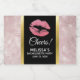 Junggeselinnen-Abschied (oder andere Veranstaltung) Mini-Sekt Flaschen mit einem Hintergrund mit einem modernen modischen Rose goldenen tropischen Blätter Muster. Oben platziert ist ein schwarzer Rahmen mit einem goldenen Farbverlauf, innen sind rosa glitschig lips.