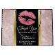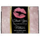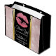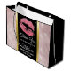 Junggeselinnen-Abschied (oder andere Veranstaltung) Gastgeschenk Geschenktasche mit einem Hintergrund mit einer modernen trendigen Rose Gold tropischen Blätter Muster. Oben platziert ist ein schwarzer Rahmen mit einem goldenen Farbverlauf, innen sind rosa glitschig lips.