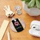 Schlüsselanhänger mit einem Hintergrund, der mit einer modernen trendigen Rose goldgelben tropischen Blätter. Oben platziert ist ein schwarzer Rahmen mit einem goldenen Farbverlauf, innen sind rosa glitschig lips. Trendy Schriftart sagt Makeup mit Ihrem personalisierten Namen und Telefonnummer.