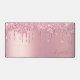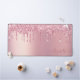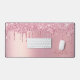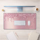 Moderne mit Monogramm Schreibtischmatte mit rosa Imitat Glitzer Tropfen auf einem rosa Imitat Folie Hintergrund. Personalisieren Sie mit Ihrem Namen in einem eleganten rosa Skript mit Swashes.