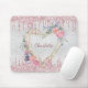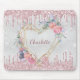 Ein Imitat silber metallisch aussehender Hintergrund. Rosa Imitate Glitzer Tropfen, Tropffarbe Farbe aussehen als Dekoration. Ein goldenes Herz mit rosa Blume. Personalisieren und einen Namen hinzufügen. Der Name wird mit einem modernen handgeschriebenen Skript geschrieben.