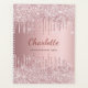Ein rot-rosa metallischer Hintergrund. Imitate Glitzer Tropfen, Farbe tropfen sehen als Dekoration. Personalisieren und fügen Sie einen Namen, einen Monogramm-Brief und einen Text, das Jahr (jedes Jahr) auf der Vorderseite. Der Name ist eine moderne dunkle Rose goldfarbene handgeschriebene Schrift geschrieben. Perfekt für Hausaufgaben in der Schule, zurück zur Schule, Termine