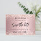 Eine Save the Date Karte für eine Sweet 16, 16 (oder jedes Alter) Geburtstagsparty. Ein rot rosa metallischer Hintergrund mit goldenen Rose Imitaten Glitzer Staub. Personalisieren und fügen Sie Datum und Name/Alter hinzu. Der Text: Save the Date wird mit einem großen angesagten, handgeschriebenen Stilskript mit Swashes geschrieben.
