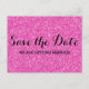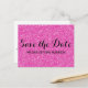 Chic und eleganter Glitzer Save the Date Postcard mit einem rosa Glitzer sehen digitale Kunstgeschichte aus. Einfach an Ihre Hochzeitsdetails anpassen. Klicken Sie für weitere Anpassungsoptionen auf die Schaltfläche Anpassen. //NICHT WIRKLICHER GLITZER - DIGITAL ART DRUCTED FLAT BILD//