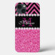 Rosa Glitzer-Schwarz-Zickzack Monogramm Case-Mate iPhone Hülle