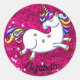 Rosa Glitzer und Einhorn Runder Aufkleber