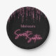 Rosa Glitzer und Schwarzer Sweet 16 Geburtstag Pappteller