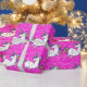 Ein buntes, funkelnd rosa Einhornwickelpapier mit einem Muster niedlicher kleiner Chubby-Einhörner mit regenbogenfarbenen Haaren, Mist und Schwanz, goldenen Sternen auf ihren Körpern und goldenen Hufen. Sie tanzen über einen glitzernden rosa Hintergrund glitzernden Glitzer. Diese rosa Einhornverpackung wäre ideal für ein Kindergeburtstag-Geschenk, für einartiges Kunsthandwerk und vieles mehr.