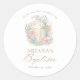 Rosa Gold Cross Floral Elegant Watercolor Taufe Klassischer Rundsticker mit einem schönen rosa und goldfarbenen Wasserfarbenkreuz, umgeben von hübschem Grün und Blume.