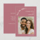 Verkünden Sie Ihren besonderen Tag stilvoll mit dieser modernen Save-the-Date-Karte in Roségold. Mit Ihrem Lieblingsfoto, das von einem minimalistischen elfenbeinfarbenen Linienrahmen umgeben ist, verbindet sie zeitlose Eleganz mit einer persönlichen Note. Die handgeschriebene Schrift verleiht einen romantischen Touch, während das klare Layout das Design modern und leicht anpassbar hält.