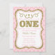 Feiern Sie Ihren kleinen Mädels den ersten Geburtstag in einer lustigen Art und Weise mit dieser rosa und goldenen Glitzer Quatrefolie 1. Geburtstagseinladung.