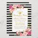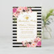 Wasserfarben Rosa Blush Gold Blumengraduiertenparty Einladungskarte mit schwarzen und weißen Streifen