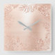 Rosa Gold Metallic Palm Botanischer Metallic Quadratische Wanduhr