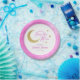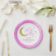 Rosa Gold Moon & Stars über der Mond Babydusche Pappteller