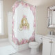Rosa und goldfarbener Duschvorhang mit hübscher goldgelber Kutsche auf einem schönen, rosa und goldfarbenen, blühenden Hintergrund. Diese Duschkabine ist leicht mit einem Namen oder dem von Ihnen gewünschten Text im Schriftart-Stil gestaltet. Sie können auch die Hintergrundfarbe dieses hübschen Duschvorhangs der Prinzessin ändern.