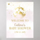 Rosa Gold über dem Mond Babydusche Begrüßungszeich Poster