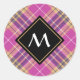 Rosa, Gold und Blauer Tartan Runder Aufkleber