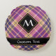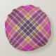 Rosa, Gold und Blauer Tartan Rundes Kissen