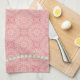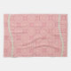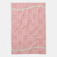 Dieses elegante Geschirrtuch ist für jede elegante Küche perfekt. Es kennzeichnet ein Rosa und einen Goldhintergrund. Grafiken der Perlen sind an der Spitze und an der Unterseite.