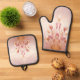 Schöne rosa Golden Blätter Blumenoven Mitt & Pot Holder Set