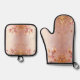 Rosa goldene Blätter Blumenofen Mitt & Töpfchen Ofenhandschuh & Topflappen-Set