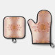 Rosa Goldene Blätter Ofenhandschuh & Topflappen-Set