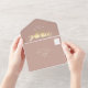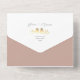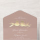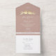 Romantische rosa rosafarbene All-in-One-Hochzeitseinladung mit goldener Folie Unzertrennlichen und eleganter Typografie. Dieses gefaltete Design enthält Ihre vollständigen Hochzeitsdetails, eine Antwortkarte mit Essensvorlieben und Platz für Ihre Hochzeitswebsite. Eine praktische, umweltfreundliche Option - kein Umschlag erforderlich. Perfekt für moderne Paare, die Eleganz mit Leichtigkeit suchen.