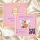 Ein trendiger rosa Hintergrund und Imitate goldene Rahmen. Personalisieren Sie Ihr Firmenlogo, Ihren Firmennamen und Ihren Text auf der Vorderseite. Zurück: Vorlagen für Ihren Namen, Titel, Foto, Telefonnummer, E-Mail- und Website-Adresse, QR-Code für Ihre Website oder Ihr Social-Media-Konto.