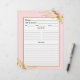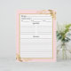 Hier ist die perfekte doppelseitige Rezeptseite, die für die Koordination mit dem passenden Bindemittel entworfen wurde. Das Design, sowohl vorne als auch hinten, ist mit einem hübschen Imitat aus goldgelbem Blattgold oben rechts und unten links auf einem rosa Hintergrund mit Platz für alle Informationen, die Sie für Ihre Rezepte benötigen. Wenn Sie eine Designfrage haben oder dieses Design auf einem anderen Produkt sehen möchten, kontaktieren Sie mich bitte unter jschmidtdesignworks@gmail.com. Design © Judith Schmidt.