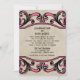 Elegante und schicke gotische Wirbel Einladung Hochzeit mit einem Vintagen Imitat strukturiert beige Hintergrund und wirl blühte Rahmen in magenta. Dieses antike Design eignet sich perfekt für eine gotische Hochzeit oder eine Vintage Hochzeit. Einfach zu anpassen, fügen Sie einfach Ihre Hochzeitsdetails in den Textfeldern zur Verfügung gestellt. Klicken Sie auf "Anpassen", um weitere Personalisierungsoptionen zu erhalten.