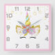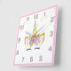 Rosa graue Einhorn-Kinderzimmer-Decke Wall Clock Quadratische Wanduhr