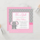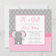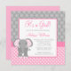Rosa graue Elefant-Tupfen-Mädchen-Babyparty Einladung