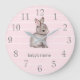 Rosa graue Häschen-Baby-Jungen-Kinderzimmer-Dekor-Wand-Uhr