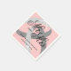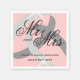 Chic Mr. und Mrs. Papier Hochzeitsnapkins mit goldenen Ringen. Elegantes, schwarzes Skript Typografie Design für klassische Hochzeitsfeier. Stilvolle handgeschriebene Kalligraphie, grauer Text. Personalisiert mit dem Namen der Braut und des Bräutigams. Niedlich verstrichene Silberhochzeitsringe. Farbkombination Rosa und Grau.
