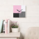 Rosa grauer geometrischer Schwarzweiss-Block Quadratische Wanduhr