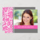 Individuelle Fotovorlage 18. Geburtstagsparty Einladungen in eleganten und hübschen hellen Fuchsia heißen Rosa, Holzkohle dunkelgrau, und weiß klassisch und schick floralen Damast Muster. Geben Sie Ihren Namen, Ihr Foto und Ihre Party-Details für eine einzigartige und stilvolle 18. Geburtstagsfeier ein.