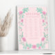 Tauchen Sie ein in die Romantik und Eleganz unseres raffinierten Plakatplakats, das mit einem exquisiten rosa und aquamarin grünen Blumenkranz geschmückt ist. Dieses Poster mit insgesamt 12 Tischen fügt Ihrer Hochzeitsdekoration eine raffinierte und stilvolle Touch hinzu.