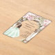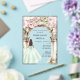 Ein klarer, transparenter Hintergrund. Ein großer Marmorbogen mit rosa Blumen. Ein Mädchen mit einem grünen Kleid. Personalisieren und fügen Sie einen Namen und Details.