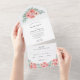Eine schöne rosa und grüne Aquarellblüte alles in einer Einladung zur Hochzeit. Ihre Gäste können die RSVP-Karte abreißen und per E-Mail zurückschicken. Alle Felder können bearbeitet werden.