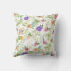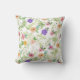 Dieses Shabby Chic Blumenkissen mit rosa Blume, gelben Blumen, violetten Blumen und roten Blume auf einem Feld von grünen Blätter.