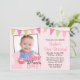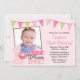 Themed 1. Geburtstags-Party Einladungen der niedlichen Eule. Ein süßer Entwurf in rosa, in Grünem und in Braunem für einen ersten Geburtstag des kleinen Mädchens. Addieren Sie ein Foto, um dieses Special einladen zu lassen. Einige Grafiken durch www.jwillustrations.com