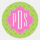 Rosa + Grüne Quilfolie Monogramm Runder Aufkleber